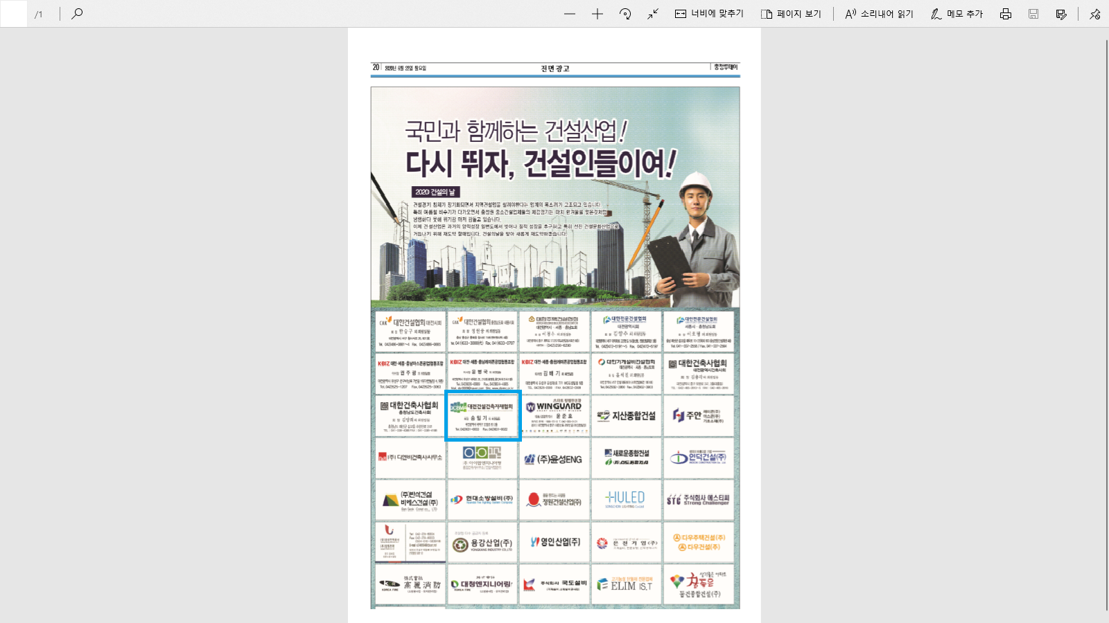 "2020 °Ç¼³ÀÇ ³¯" È«º¸ 6¿ù22ÀÏ ¿ù¿äÀÏ <ÃæÃ»Åõµ¥ÀÌ>